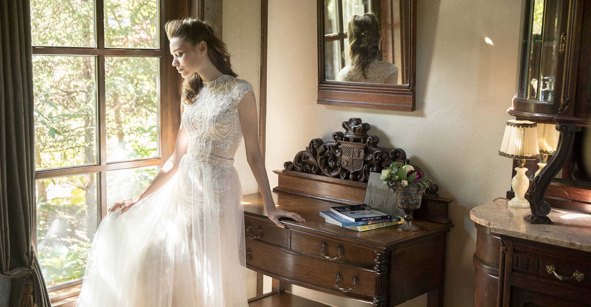 シルク素材と、洗練されたデザインが魅力の海外インポートのドレスを採用