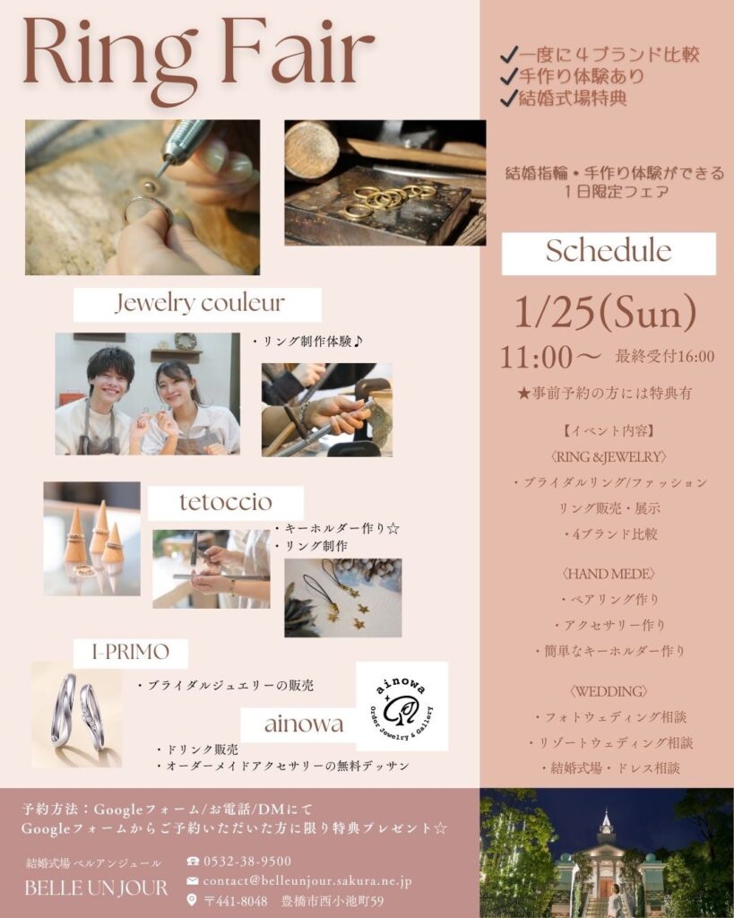 【ブライダルリングフェア】1/25(日)体験フェアのお知らせ